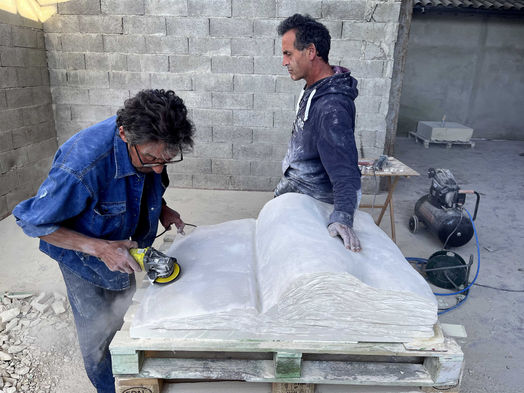Partendo da un blocco di pietra calcarea di 1m x80x25 cm si realizzerà un libro aperto a metà dove su di un lato verranno incisi tutti i nomi delle persone che hanno collaborato alla sua realizzazione, anche in Braille, mentre sull’altro lato verrà incisa la frase: “Verso la meta” La finalità di questo laboratorio è quella di far emergere le potenzialità e le caratteristiche di ciascuno alimentando, attraverso un lavoro condiviso, la cooperazione e la relazione.